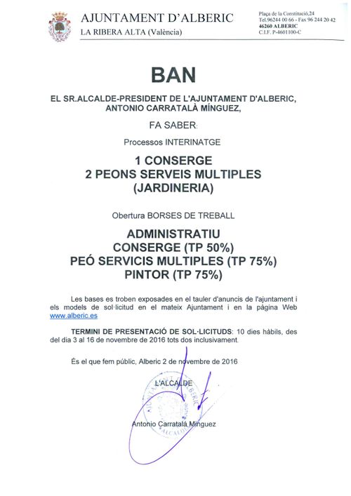 Lugar; Registro de Entrada del Ayuntamiento de Alberic.