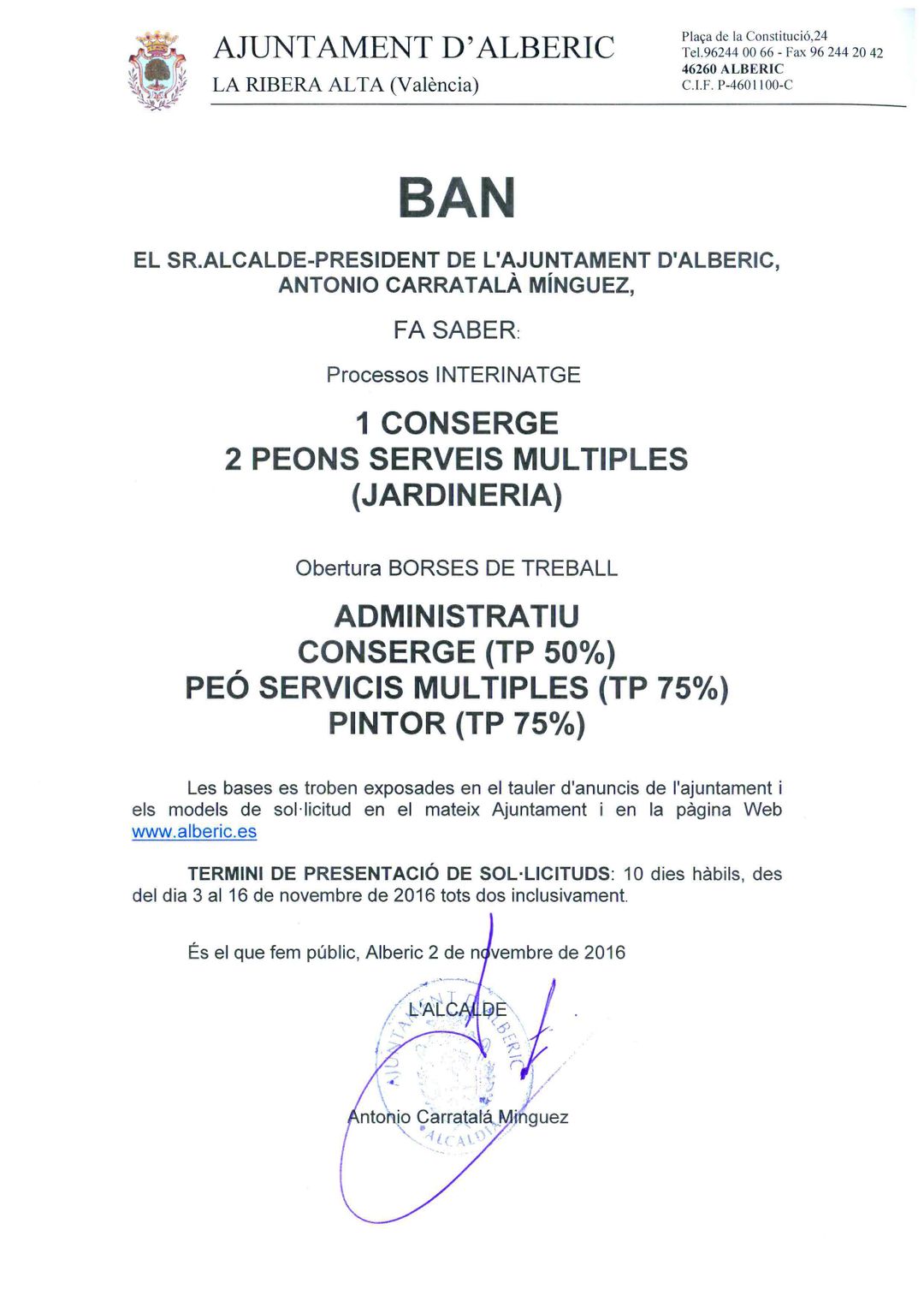Mediante acuerdo de Junta de Gobierno de fecha 19 de octubre de 2016, se han aprobado las bases para la creación de la bolsa de trabajo de Administrativos, para cubrir necesidades urgentes e inaplazables con carácter temporal, por el sistema de concurso-oposición.